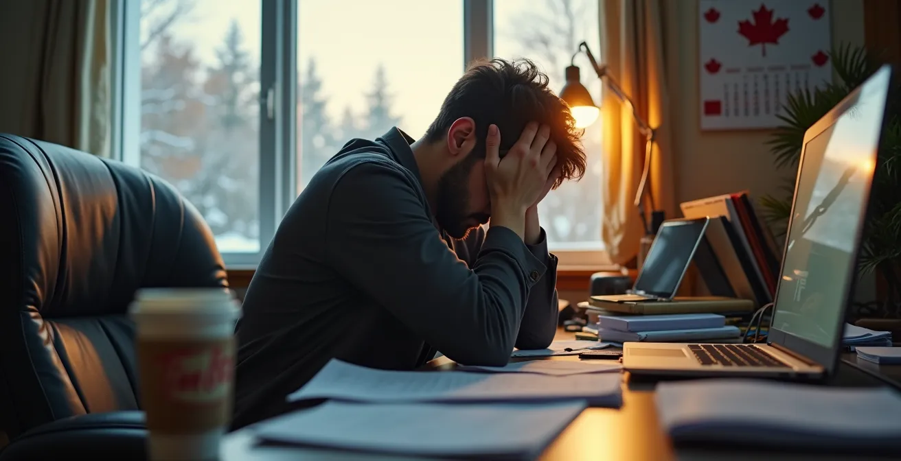 L’effondrement psychologique n’est jamais soudain. C’est l’aboutissement d’un processus lent, une accumulation de petites dégradations que l’on normalise au quotidien. Au Canada, l’enjeu est de taille : selon les données de 2023, plus de 4 millions de personnes vivent un stress élevé au travail, un terreau fertile pour l’épuisement. La première étape de votre système de surveillance est donc de savoir quels “voyants” regarder sur votre tableau de bord interne. Il ne s’agit pas de chercher la maladie, mais de repérer les déviations par rapport à votre état de fonctionnement normal.